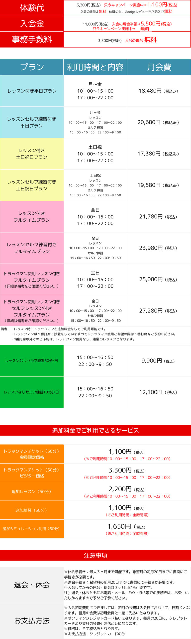 新宿のゴルフスクール、ゴルフステーション新宿のlessonfee_20240001