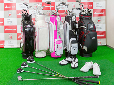 ゴルフクラブ、シューズは全て無料レンタルできます!服装は自由ですので、会社帰りにスーツのままでもレッスンを受けていただけます。もちろん更衣室完備ですので着替えもOK!ゴルフグローブは新型コロナ感染予防の為、無料レンタルを中止しております。ゴルフグローブはご用意いただくか、お買得な商品(700円税別)を販売しておりますのでご利用ください。
